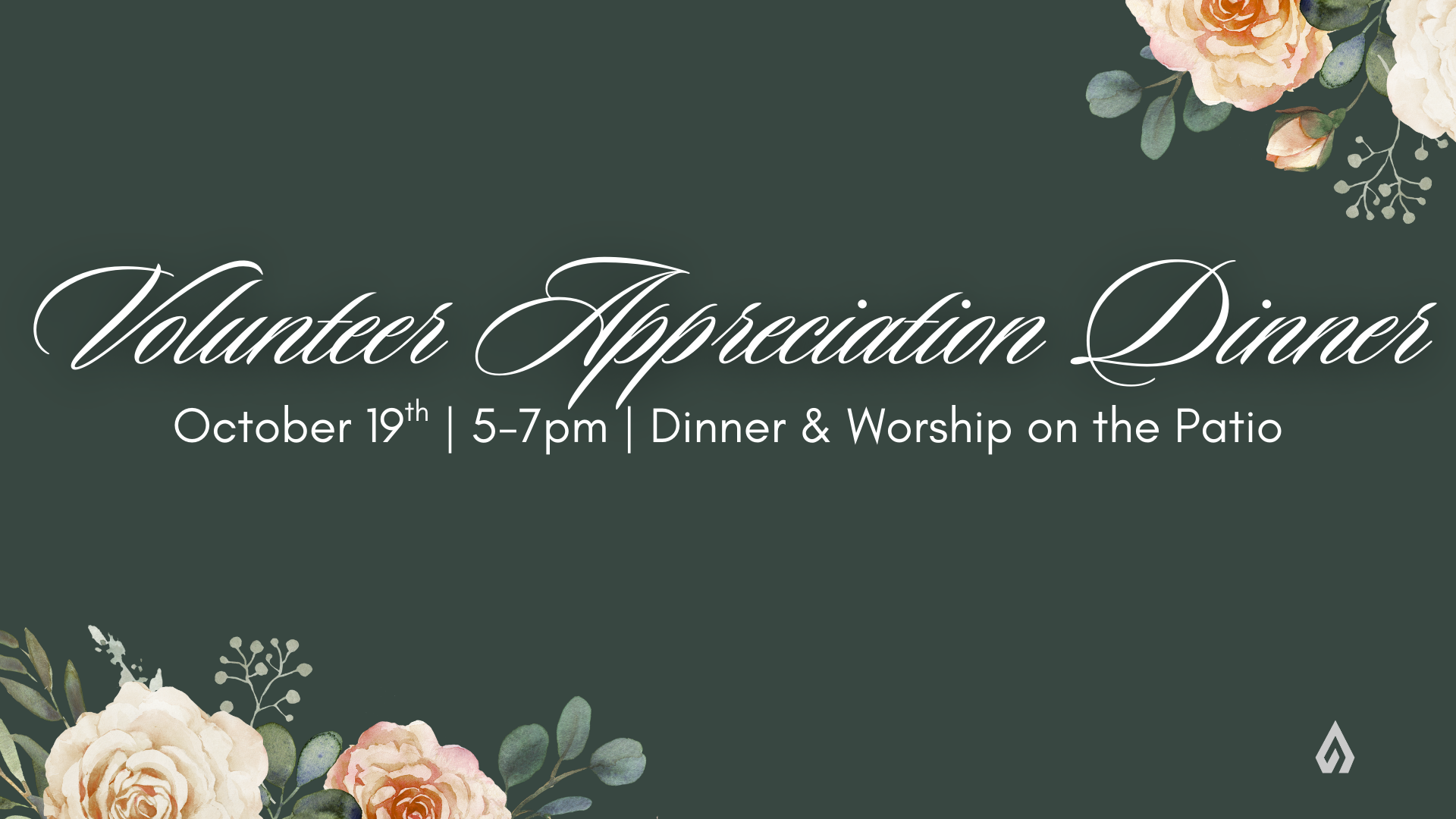 Volunteers, we love and appreciate you! We want to serve you on Sunday October 19th from 5-7pm in the Family Life Center with special worship out on the patio! Invitations will be passed out or you can get one in the foyer along with sign up sheets. The whole family is invited, please RSVP no later than Monday, October 13th by 4pm.